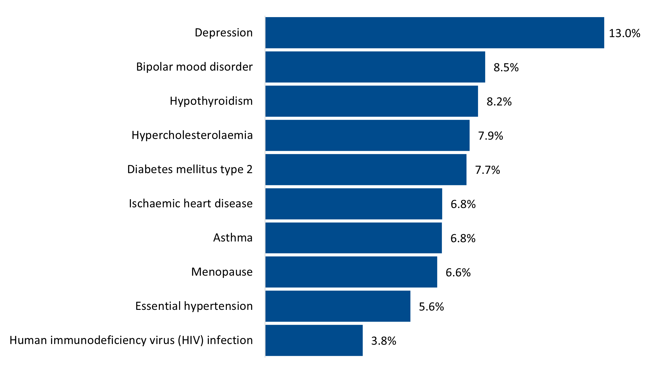 Figure 7: Prevalence of mental health conditions in the chronic vs non‑chronic population