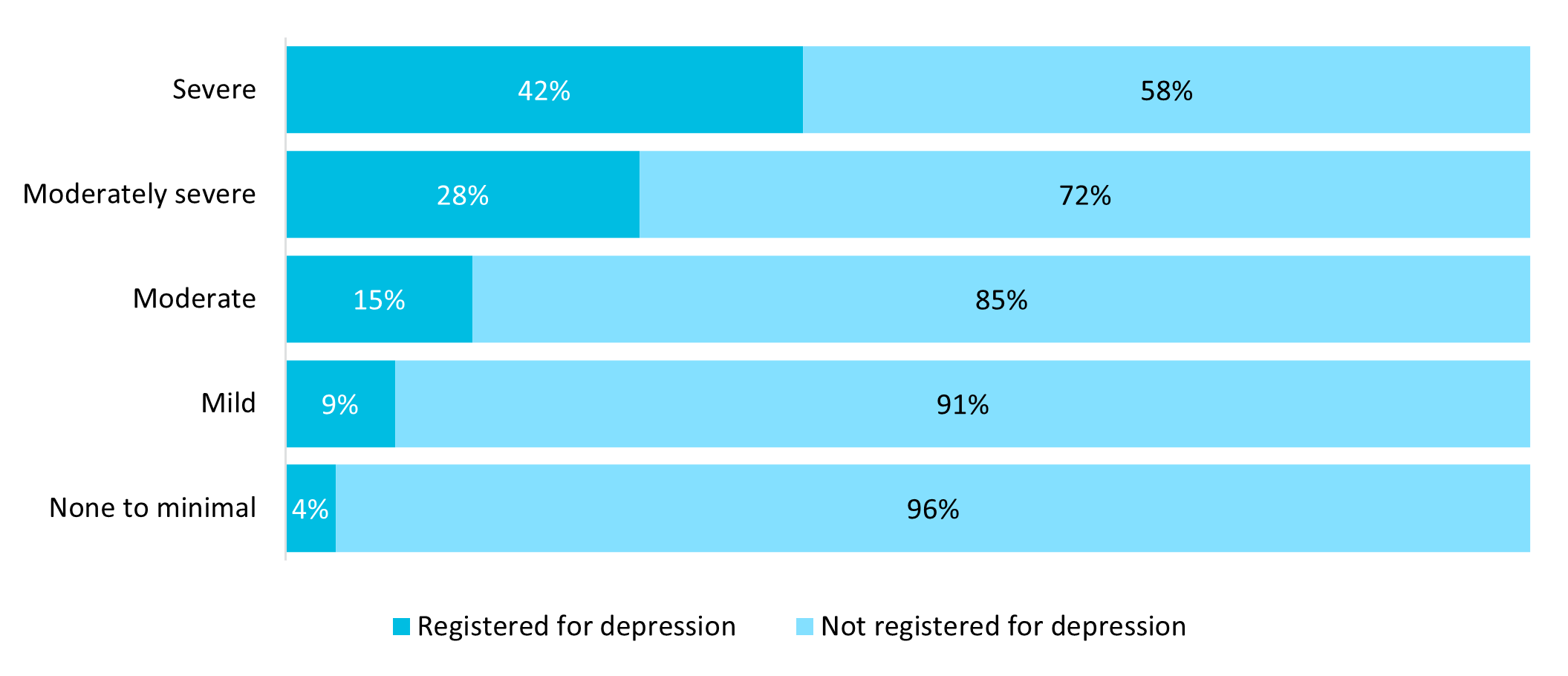 Figure 3: Proportion of members completing a PHQ‑9 questionnaire by depression registration status in 2024
