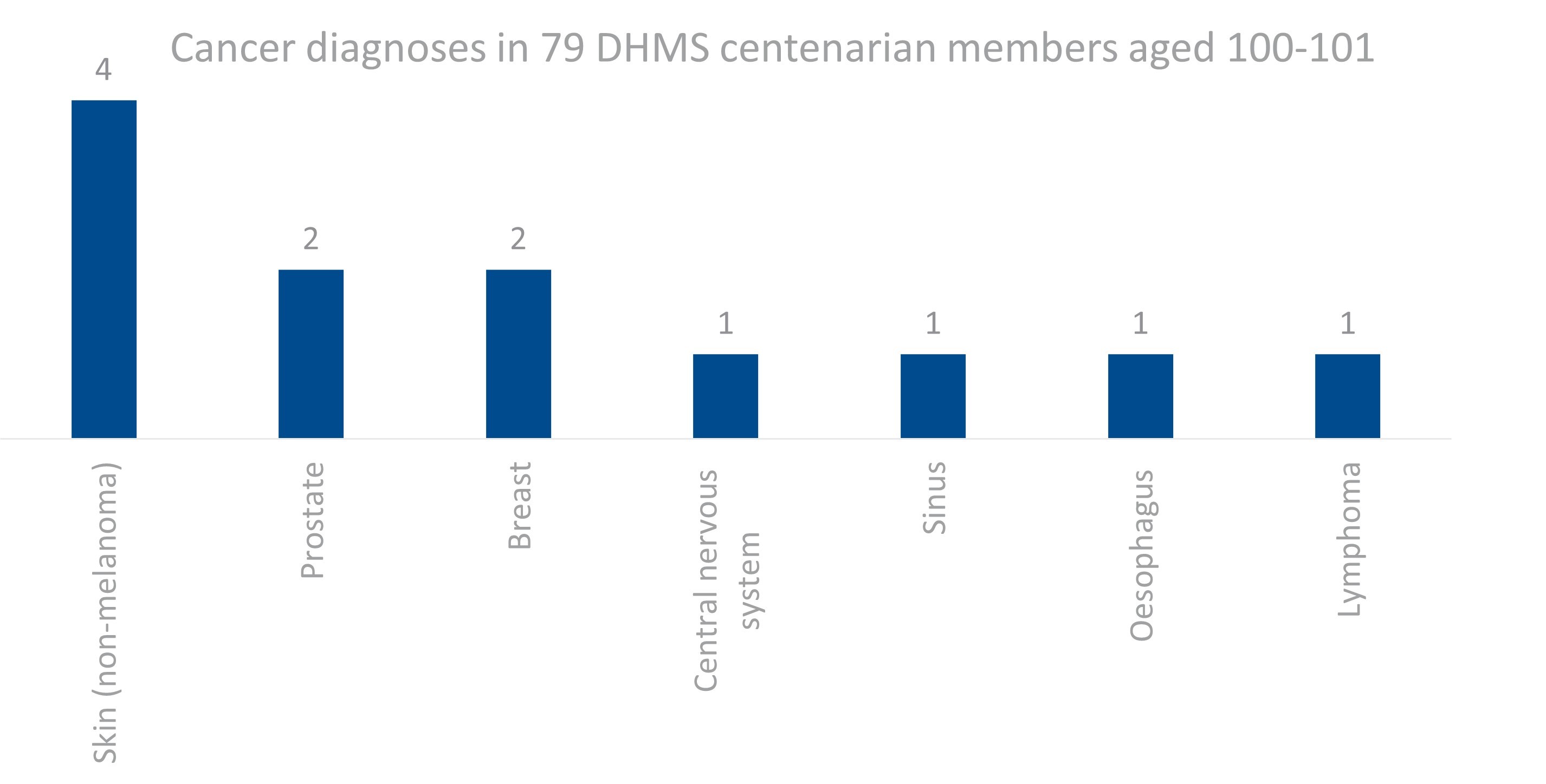 Figure 5. Cancer diagnoses in the 79 DHMS member centenarians aged 100-101 in 2025