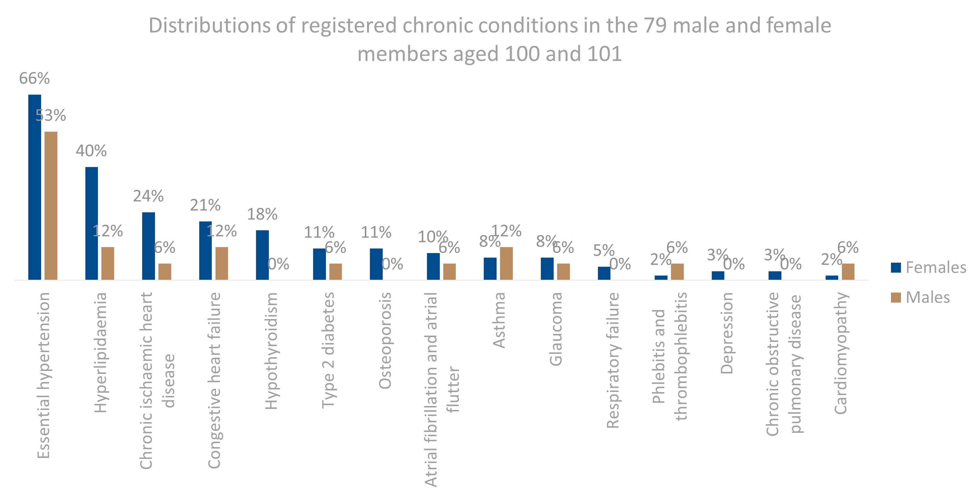 Further, in the two years since our first report, only four of the 31 centenarians - all female members - have registered for new chronic conditions.