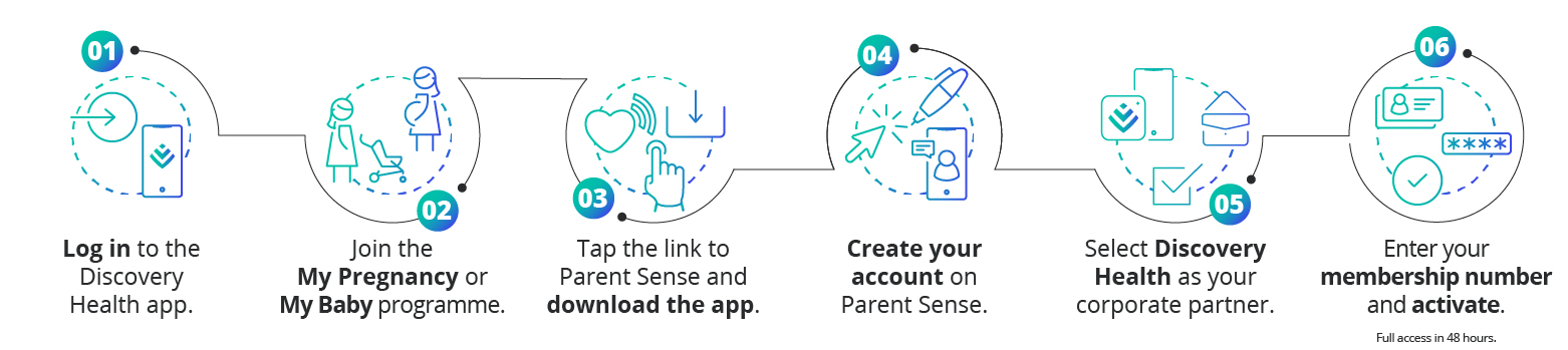 As a Discovery Health Medical Scheme member, you can activate your Parent Sense premium membership at any stage during your pregnancy or during your baby's first 12 months. You will have free access to a Parent Sense premium membership until your baby's first birthday.