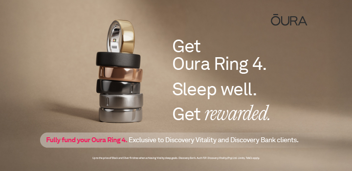 Fully fund select styles of Oura Ring 4 and start your journey to better sleep. Exclusive to Discovery Vitality and Discovery Bank clients.