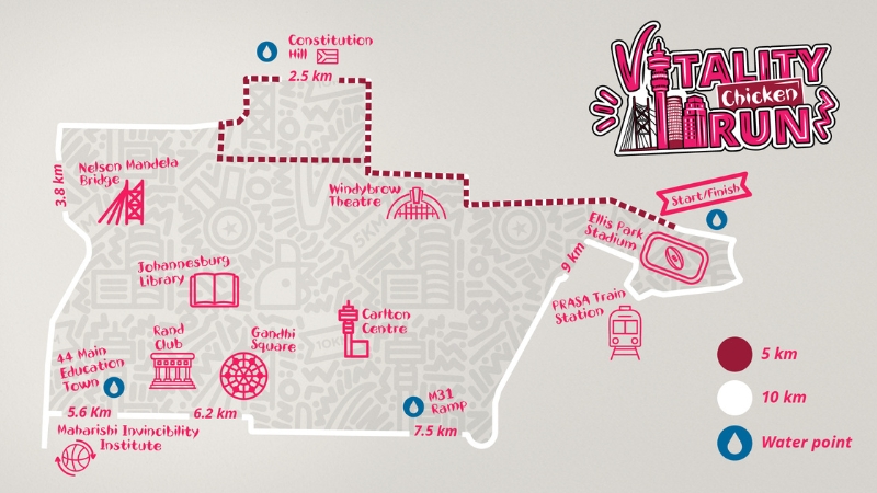 From Constitution Hill and Nelson Mandela Bridge to the colourful courts of the Maharishi Sports Club and Gandhi Square, the Vitality Chicken Run, flavoured by Nando's promises to be a celebration of fitness, flavour and fun.